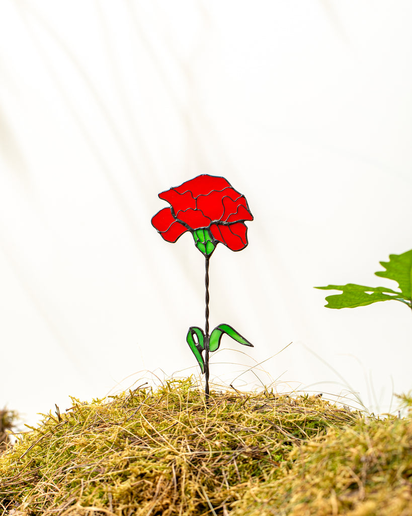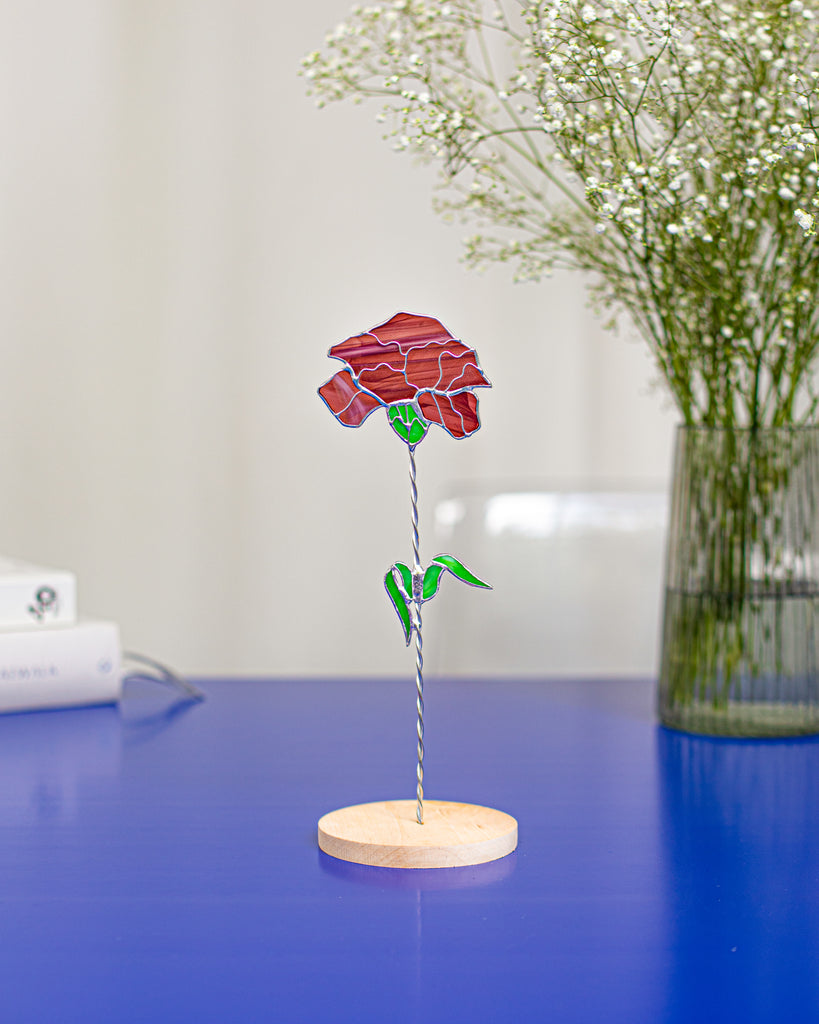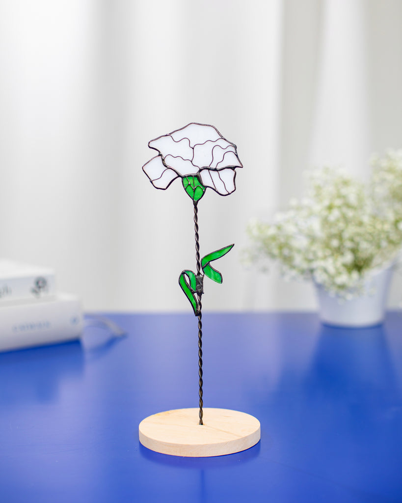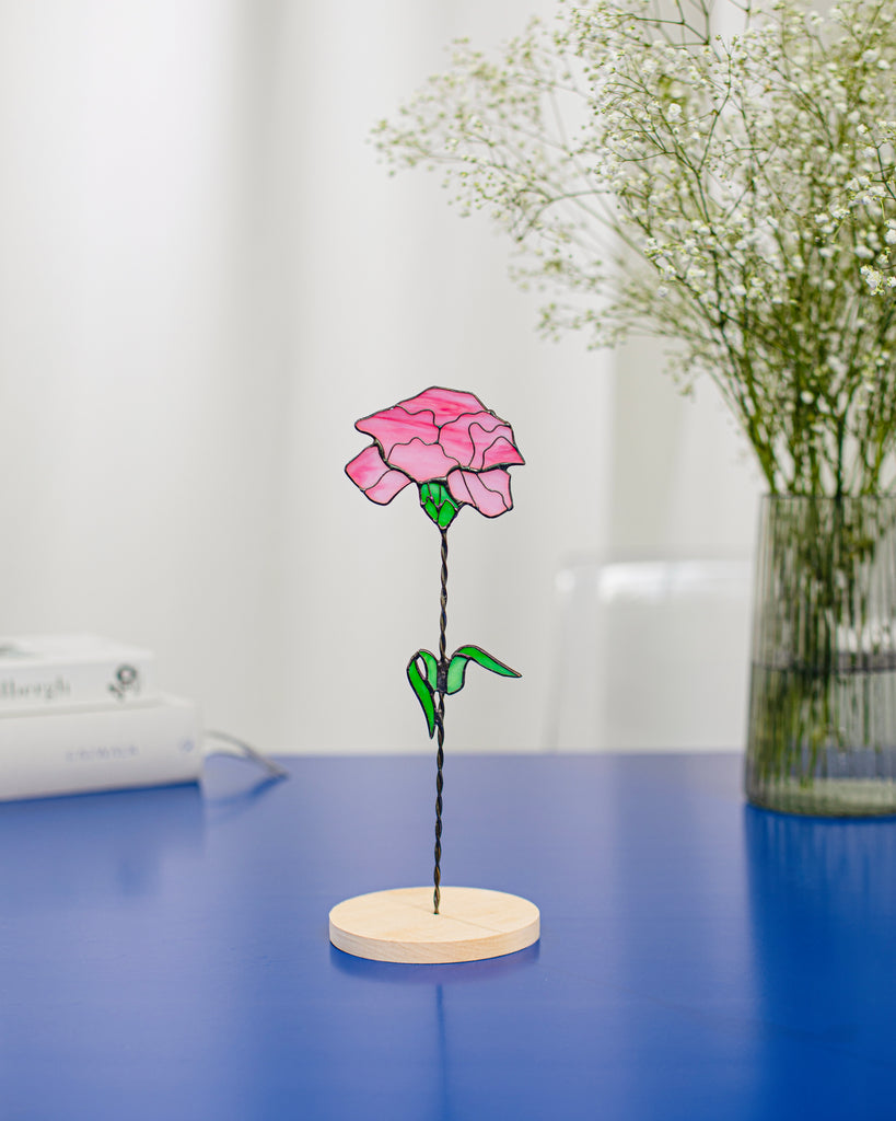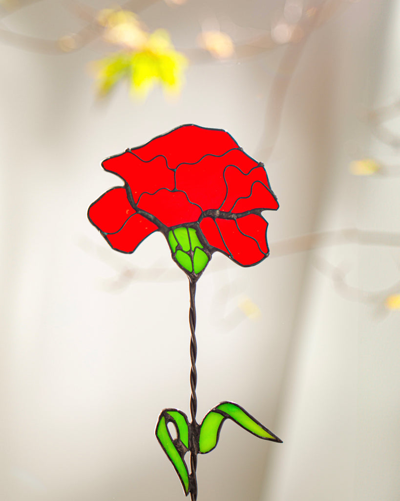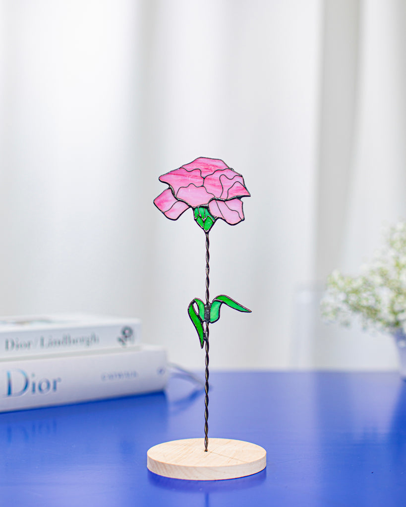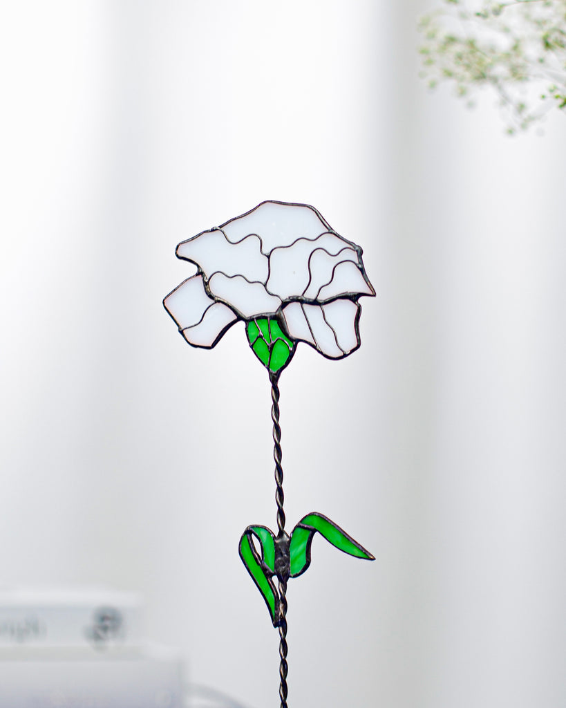 🌿 Handcrafted Stained Glass Carnation – Windowsill or Shelf Decor, Plant Stake