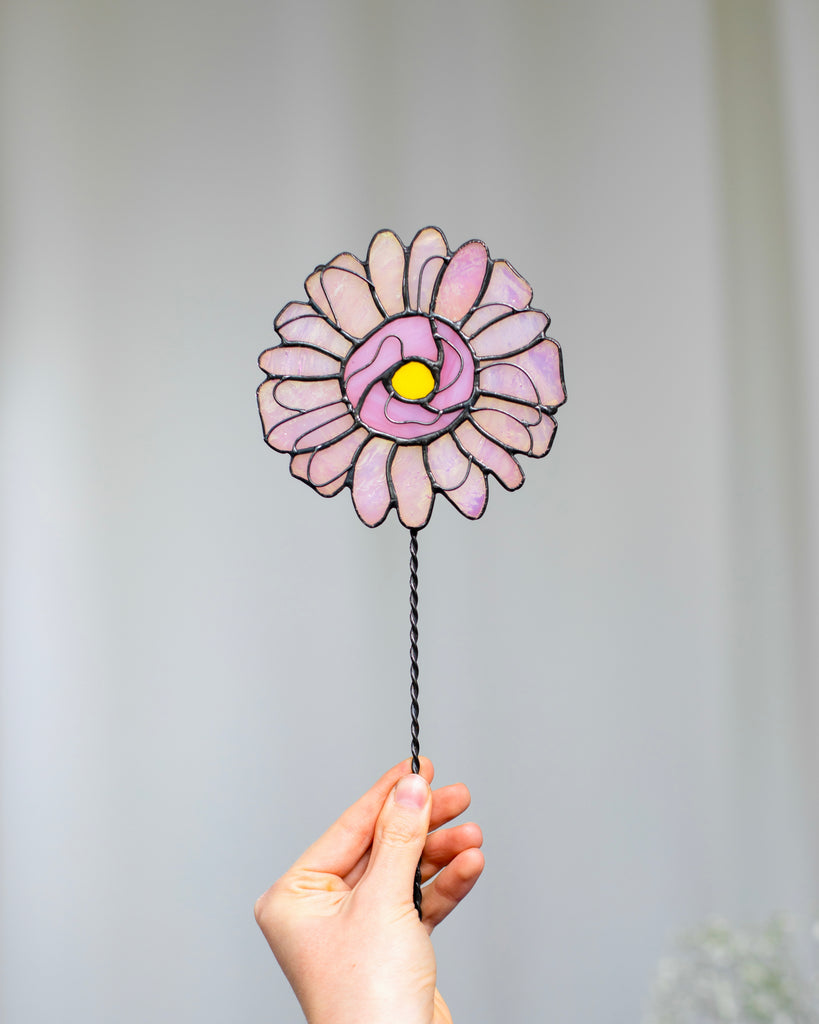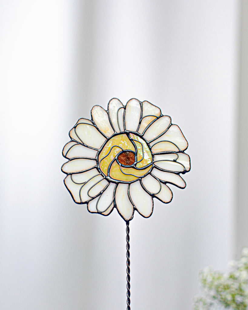 🌿 Handcrafted Stained Glass Daisy – Windowsill or Shelf Decor, Plant Stake