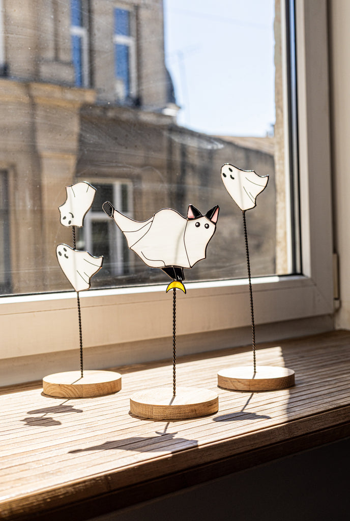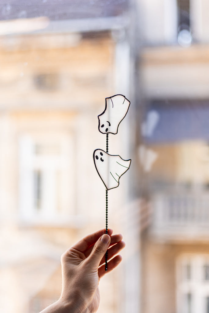 These stained glass ghosts are here to haunt - gently. With their flowing leaves and cute spooky faces, they’re the perfect way to add a little magic to your Halloween setup. Place them on your windowsill, altar, or shelf and enjoy how the sun lights them up!
