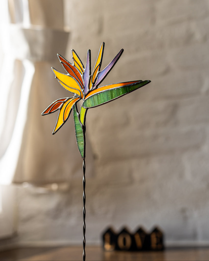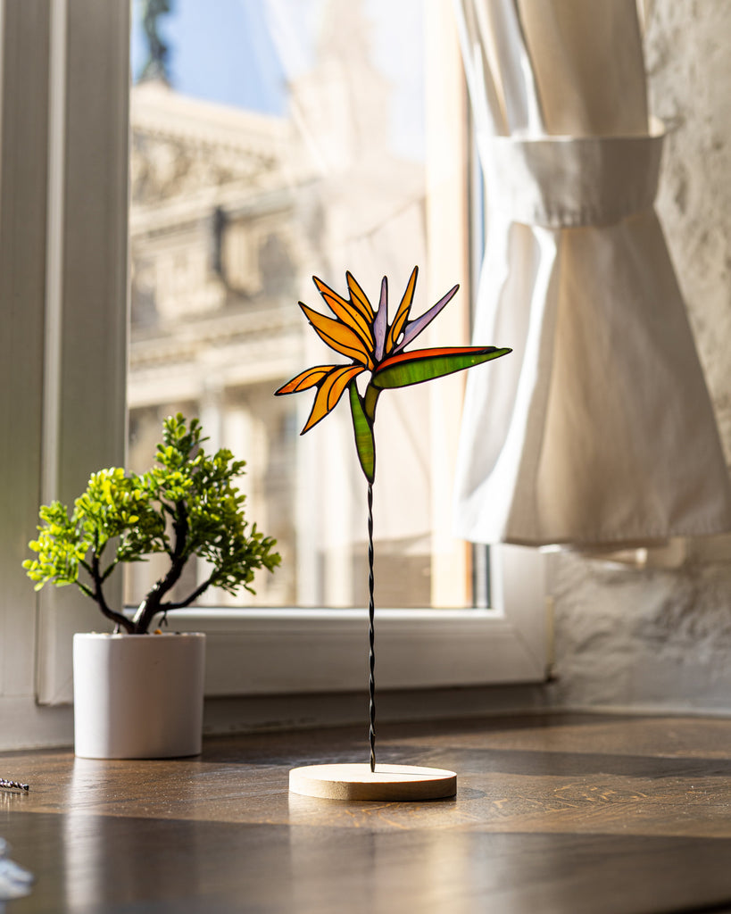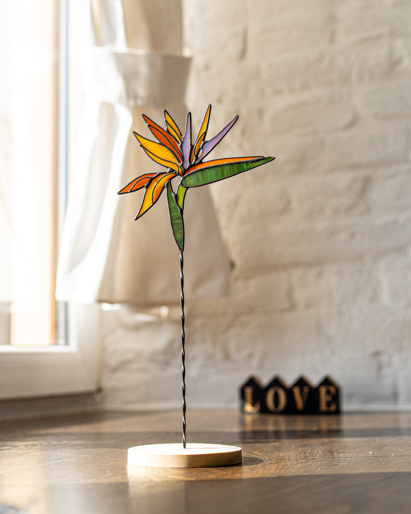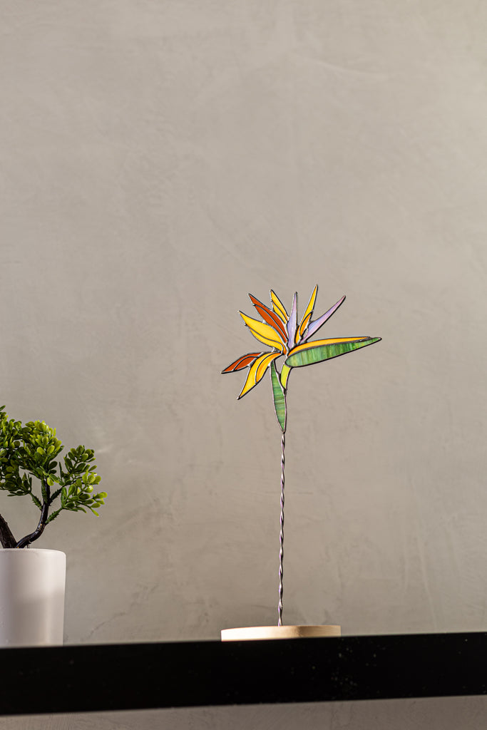 Strelitzia Stained Glass Flower, Pot Table Stand Decor, Floral Decor