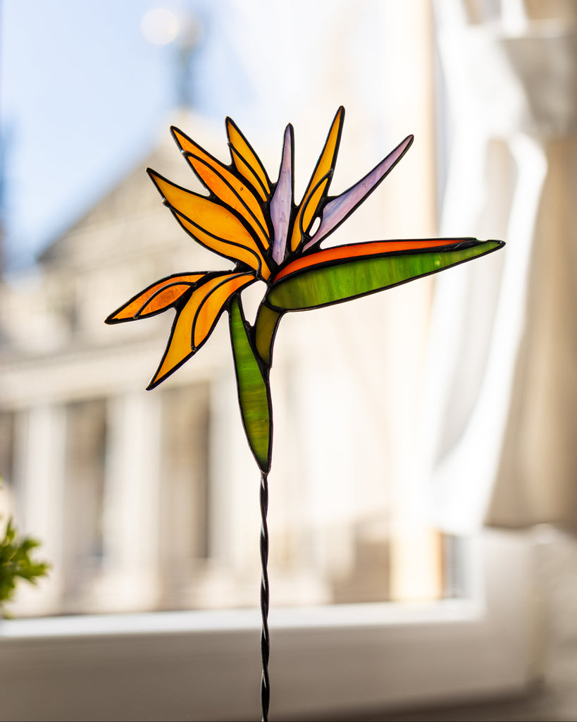 🌿 Handcrafted Stained Glass Strelitzia – Windowsill or Shelf Decor, Plant Stake